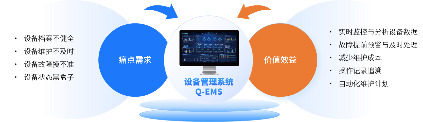 为设备全生命周期管理提供智能化服务,通过设备联网、数据采集与大模型预测分析,实现预防性维护与高效管控,降低设备维护成本,提升设备利用率,支撑碳足迹核算,解决设备故障难预判、维护不及时、档案不健全等痛点。